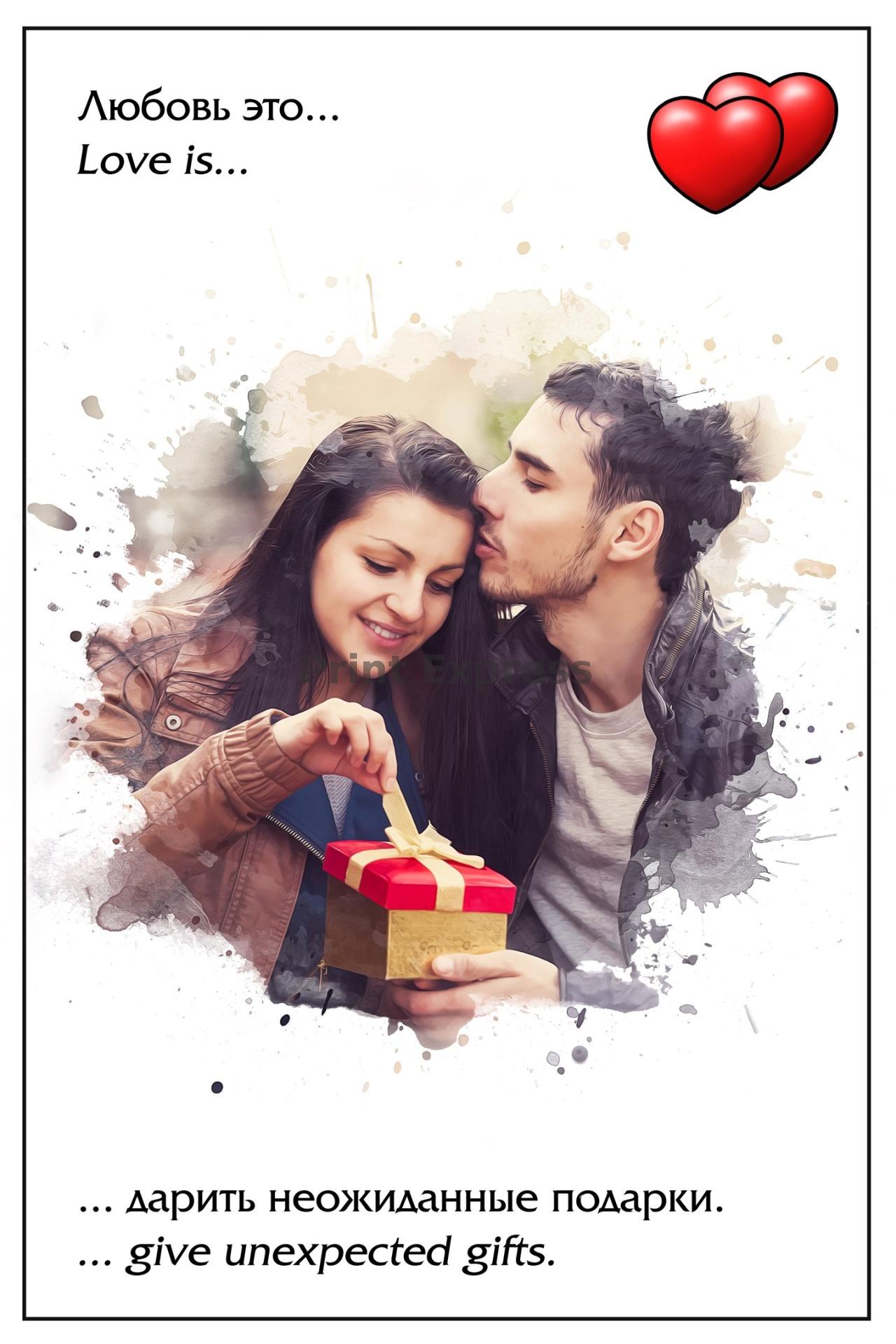 Портрет в стиле «Love is» — превосходный подарок, который дарит влюблённым целую бурю эмоций и впечатлений!