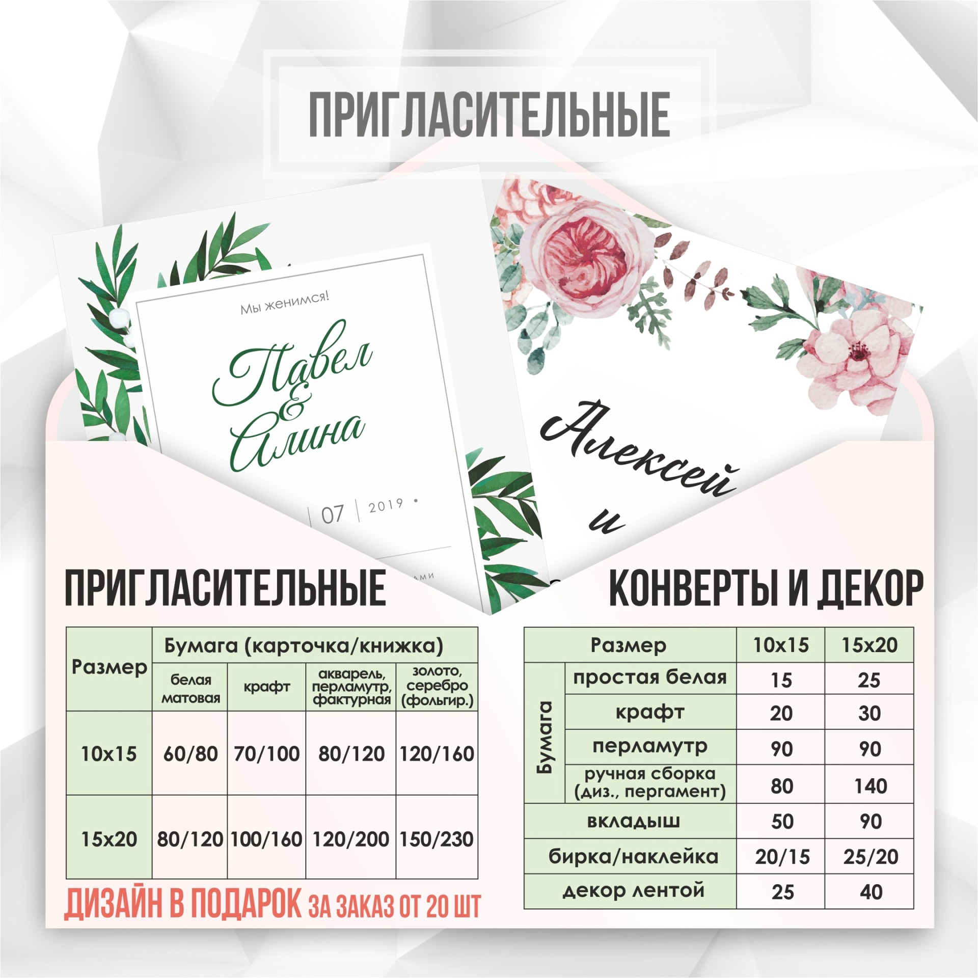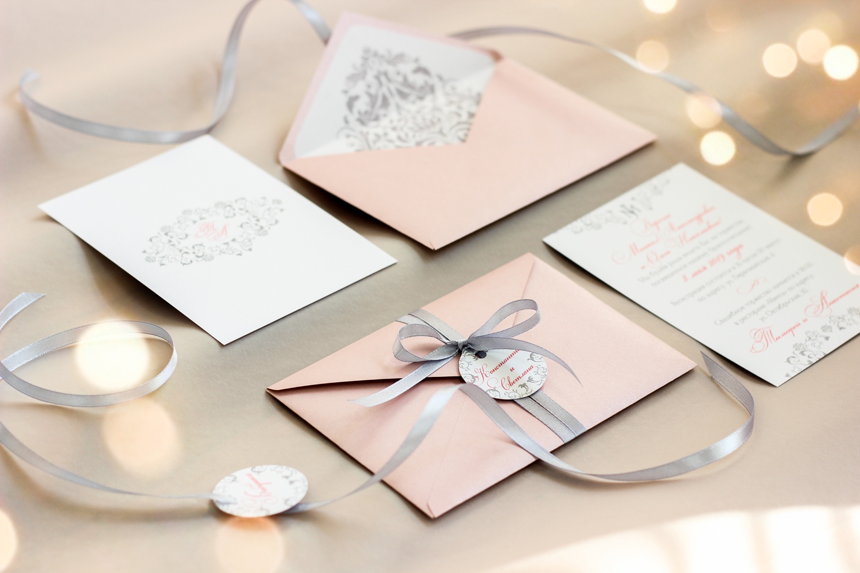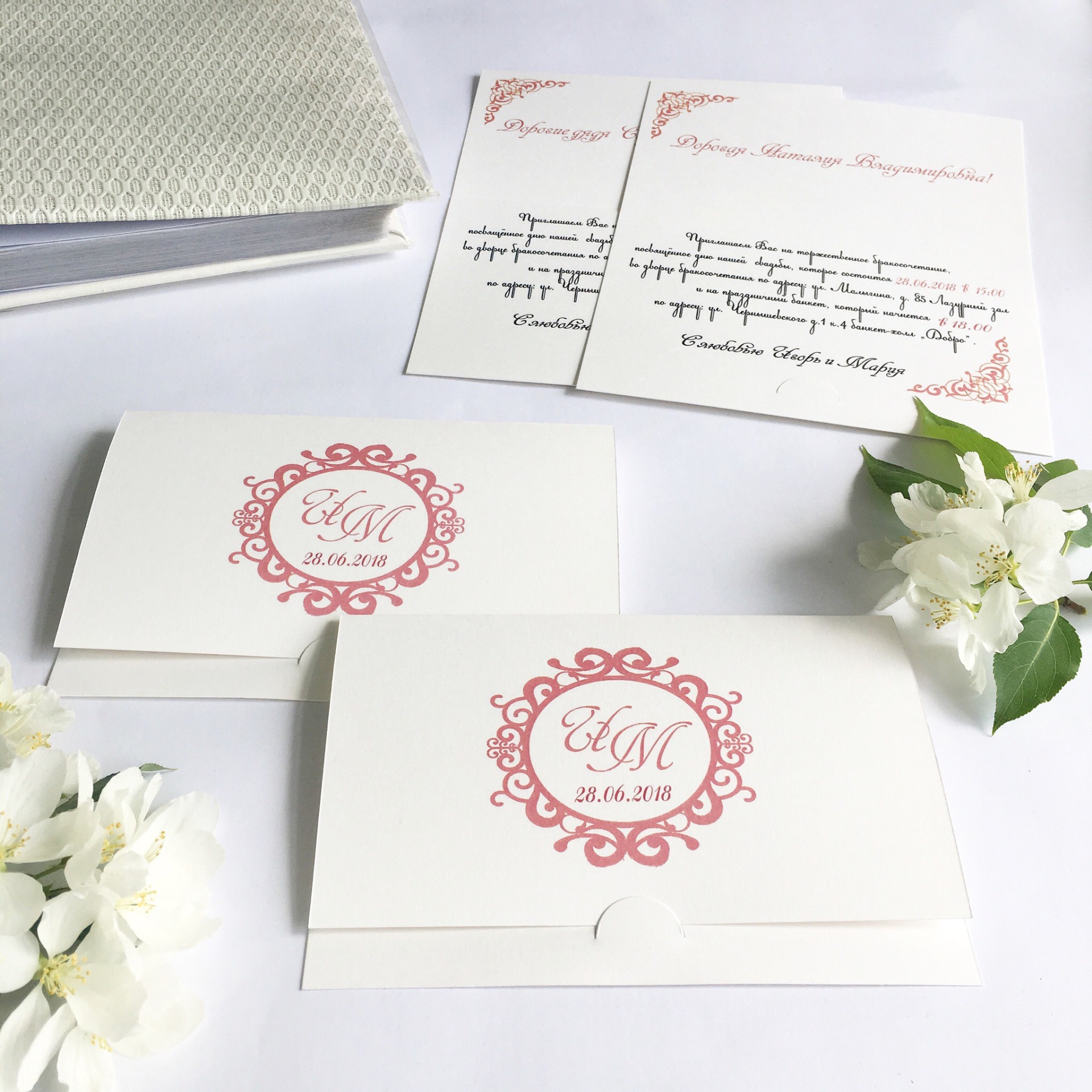- Свадебные приглашения, в конвертах и с декором;