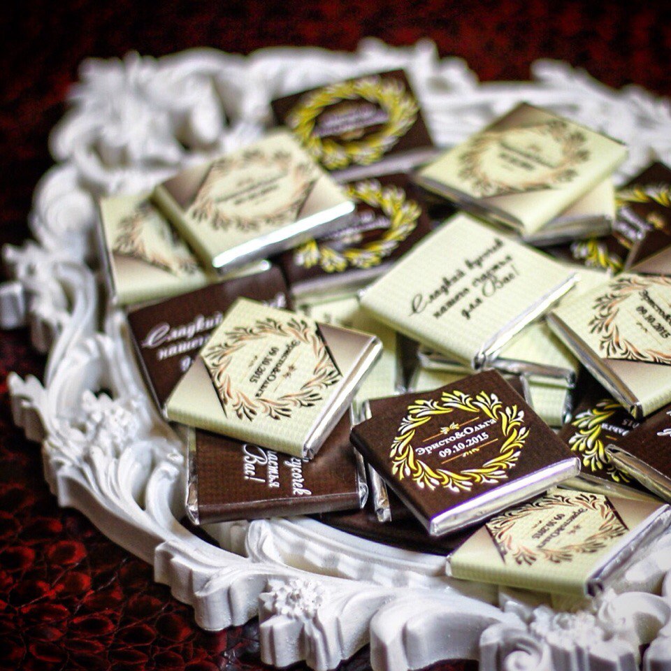- Этикетки на бутылки и шоколад;